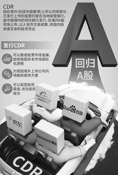 3月30日,国务院办公厅转发证监会《关于开展创新企业境内发行股票或存托凭证试点的若干意见》(以下简称《若干意见》,即CDR);随着CDR政策的定调,这一庞大的市场变得清晰起来,红筹创新企业将打开回A的破冰之旅,这意味着今后创新企业上市方式将可以CDR和IPO二选一。