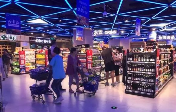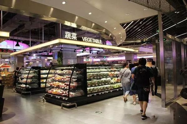 盒马鲜生的门店整体装潢是工业风装修风格,在场景构造、店铺陈列方面都表现不错,购物与饮食的场景融合,步行街动线设计,消费者可以从头逛到尾,在场景功能分区中,包括体验区、超市区、招商区、服务区等,盒马的货架基于人体工学设计,让顾客抬手就能取到商品,高度都超过1.5米,货架之间的距离也比一般超市宽敞,至少能并排走三辆购物车。