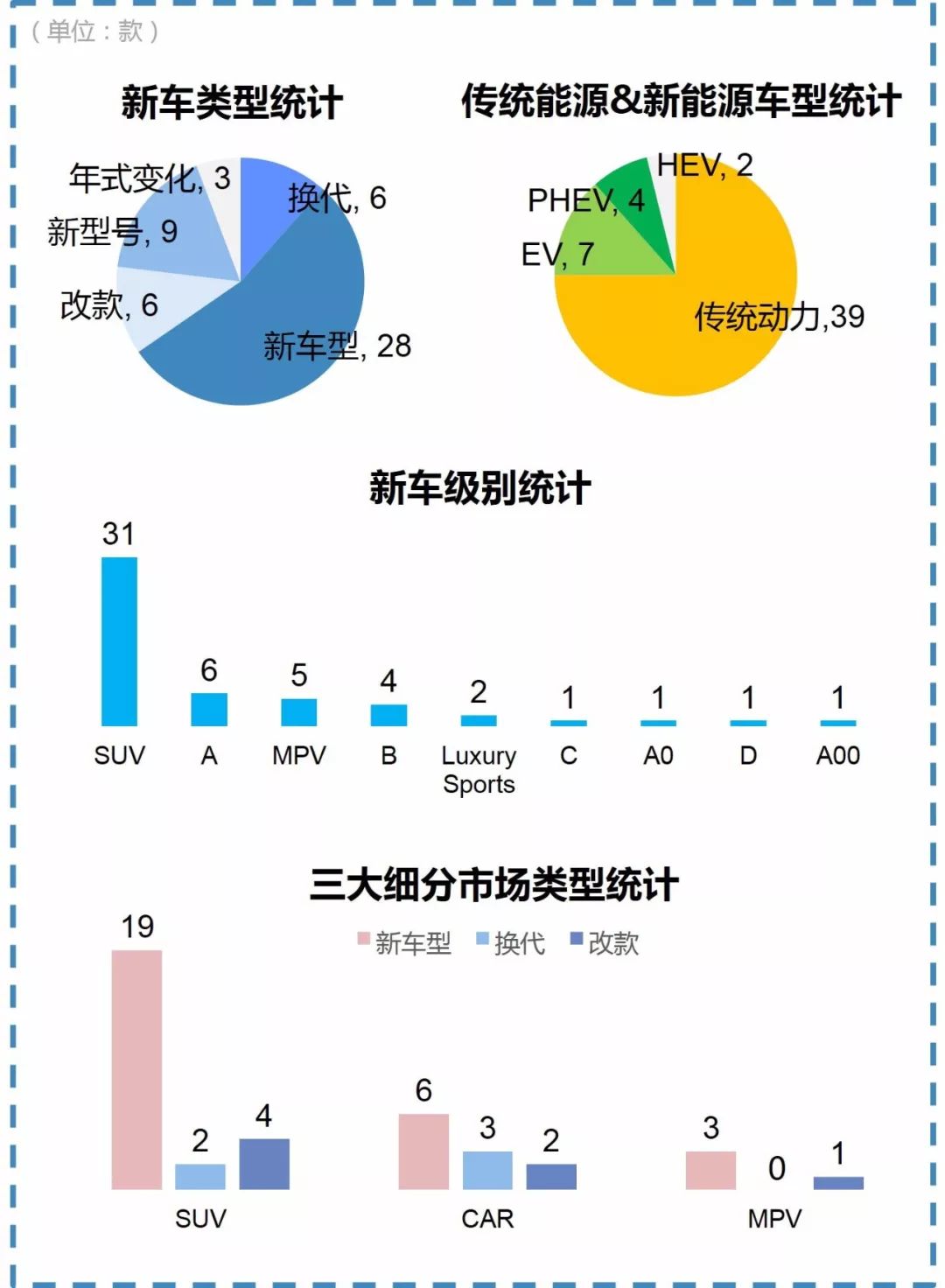 威尔森预计4月上市新车将达52款,其中全新车型占据半壁江山。从能源类型来看,传统动力车型占39款,新能源车型占11款。SUV车型数量超过4月上市新车总量的一半;三大细分市场中全新车型均占较大比例。