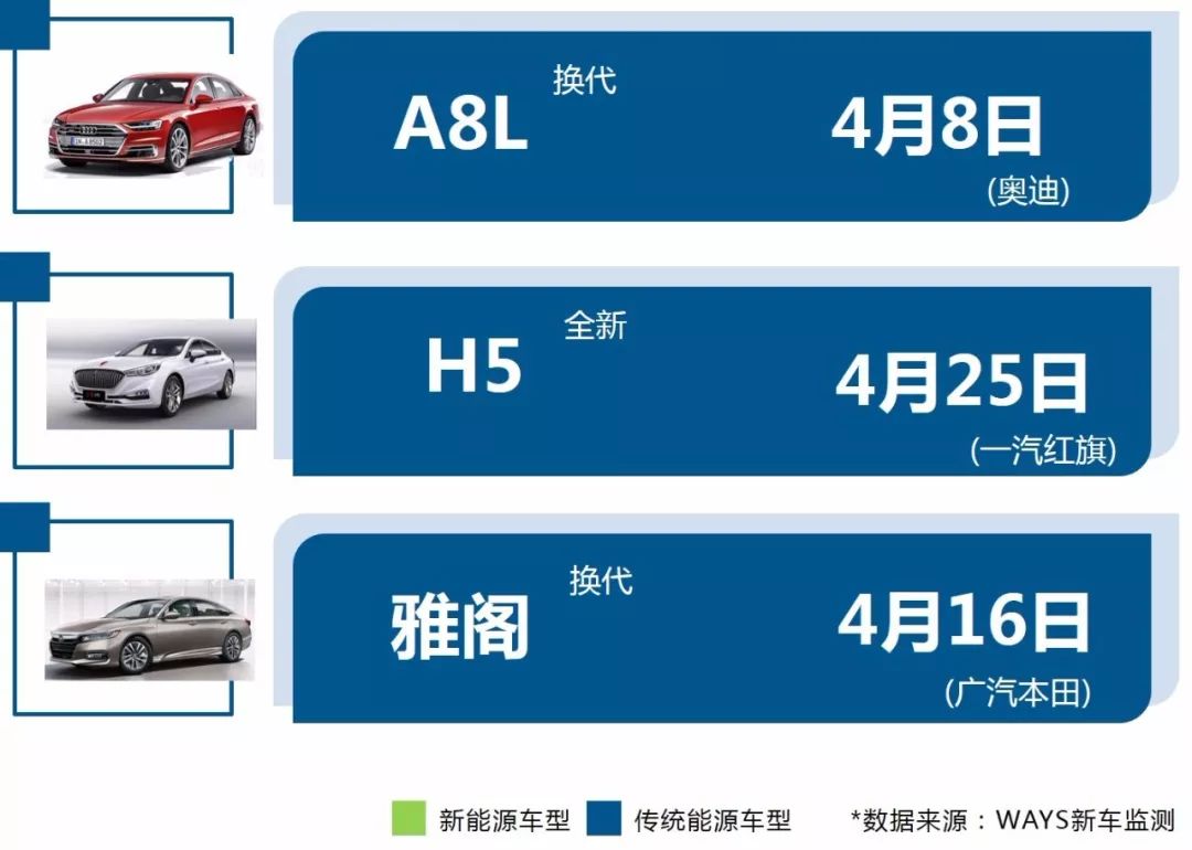 轿车市场方面,奥迪全新一代A8L将于4月8日上市,未来将向奔驰S级以及宝马7系发起全新冲击;换代雅阁也将进行全方面升级,并将于4月16日上市。