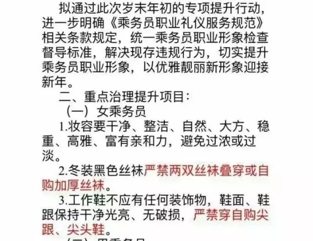 就是说,不管飞哪里,国航乘务员在飞行五个阶段(滑行和起飞阶段、爬升阶段、巡航阶段、下降阶段、进近和着陆阶段)都必须穿公司统一配发的薄丝袜。无论是去莫斯科驻外或是在哈尔滨过夜,没有羽绒服,不让穿裤子,不让穿棉袜,只能穿公司发的薄丝袜,落地时舱门打开的那一瞬间,刺骨冰凉可想而知。