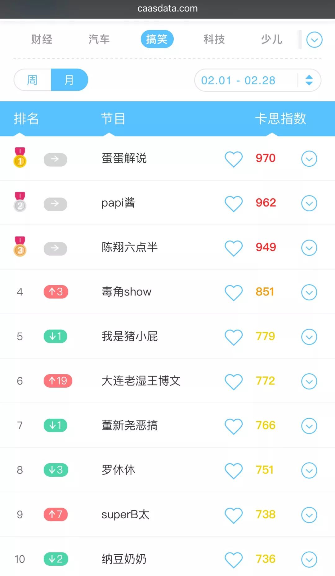 (卡思数据2月搞笑分类榜榜单)