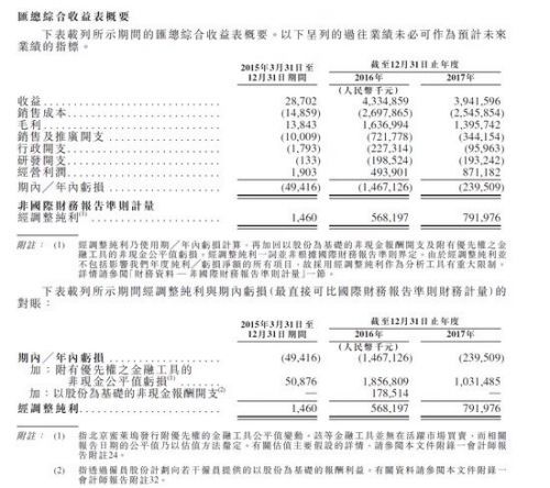 映客2015年、2016年、2017年运营利润分别190万元、4.93亿元、8.71亿元,年内亏损分别为4941万元、14.67亿元、2.39亿元。经调整纯利分别为146万、5.68亿、7.91亿元。