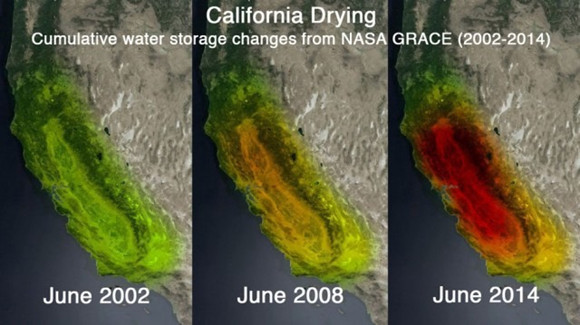 GRACE显示,2004年12月到2013年11月间,科罗拉多河流域流失近5300万英亩英尺的淡水,差不多是美国最大的水库蓄水量的2倍。其中超过四分之三的流失量(大约4100万英亩英尺),都来自地下水。而其他GRACE数据显示,萨克拉门托河和圣华金河流域每年流失共4万亿加仑的地下水,已经造成了地表下降。