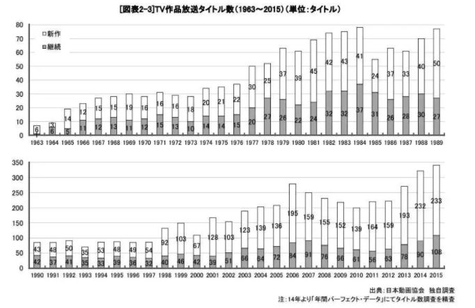 1963-2015年TV动画数量统计