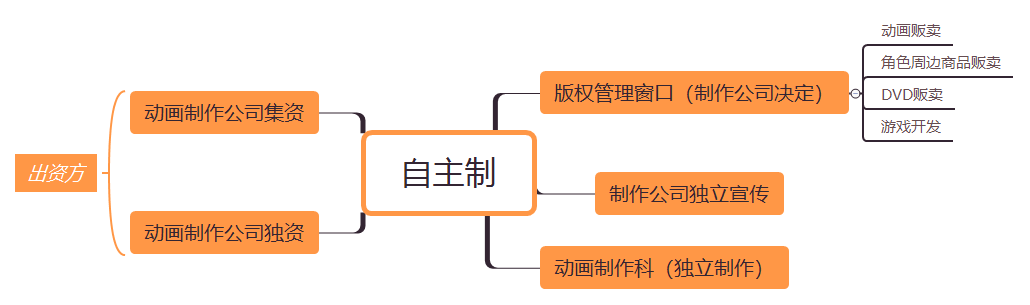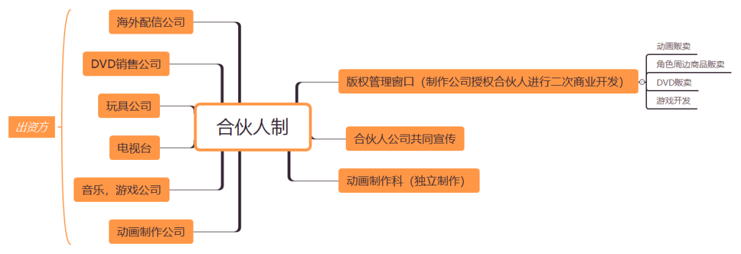 因此,考虑到制作委员会方式和自主制之间的优缺点,我认为合伙人形式会更好。福原接着解释到什么是合伙人模式:动画工作室握有创作和商务开发两方面的权利,作品的其他相关授权权利还留在制作公司的手里,制作公司可以对作品进行细分授权,从而让那些有资金但是没有作品的公司进行作品二次利用商业展开;或者是Minimum Guarantee的方式(保底分账,保底实际上是制作方对于投资方做出的未来收入承诺。如果作品最终没有并达到出资方的保底收入数字,制作方还需按照此数额分账给对方)。而像音乐、游戏公司想要合作的话,可以成为合伙人支付版权费来制作产品,各自宣传并出售产品。制作公司除了没有发售这些产品的权利,其实在组织作用上和制作委员会没有什么变化。