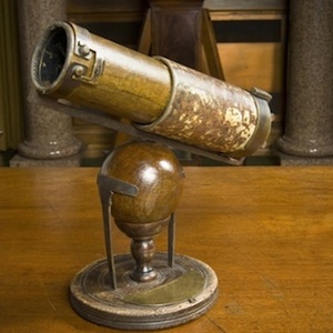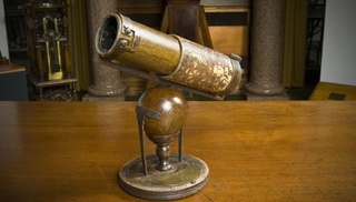 世界上第一台反射式望远镜,1668年牛顿制作。图片来自:Royal Society/PA