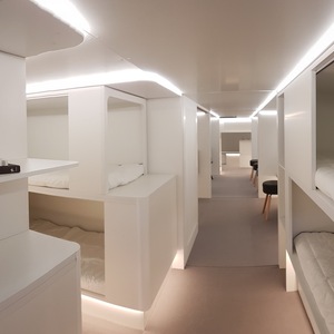 乘客卧铺模块将在常规过站期间与正常货运集装箱之间轻松互换。此外,飞机的货舱地板和货物装载系统完全不受影响,乘客模块将直接置于其上。设计图显示,除了卧铺外,乘客模块的选型还包含家庭、医疗、会议等需要的更大空间。