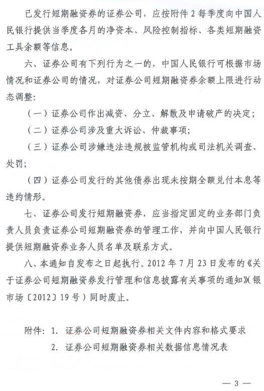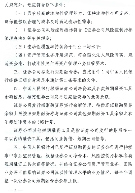 据万得通讯社报道,央行规范证券公司短期融资券管理,要求证券公司发行短期融资券时,需要符合的条件有资产管理业务开展规范,符合强化法人风险隔离、规范资金池、打破刚性兑付等资管业务监管要求。证券公司发行短期融资券实行余额管理,待偿还短期融资券余额上限按照短期融资券与证券公司其他短期融资工具余额之和不超过净资本的60%计算。