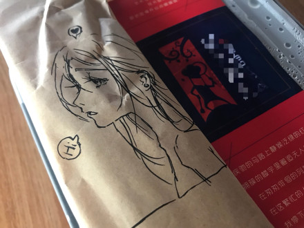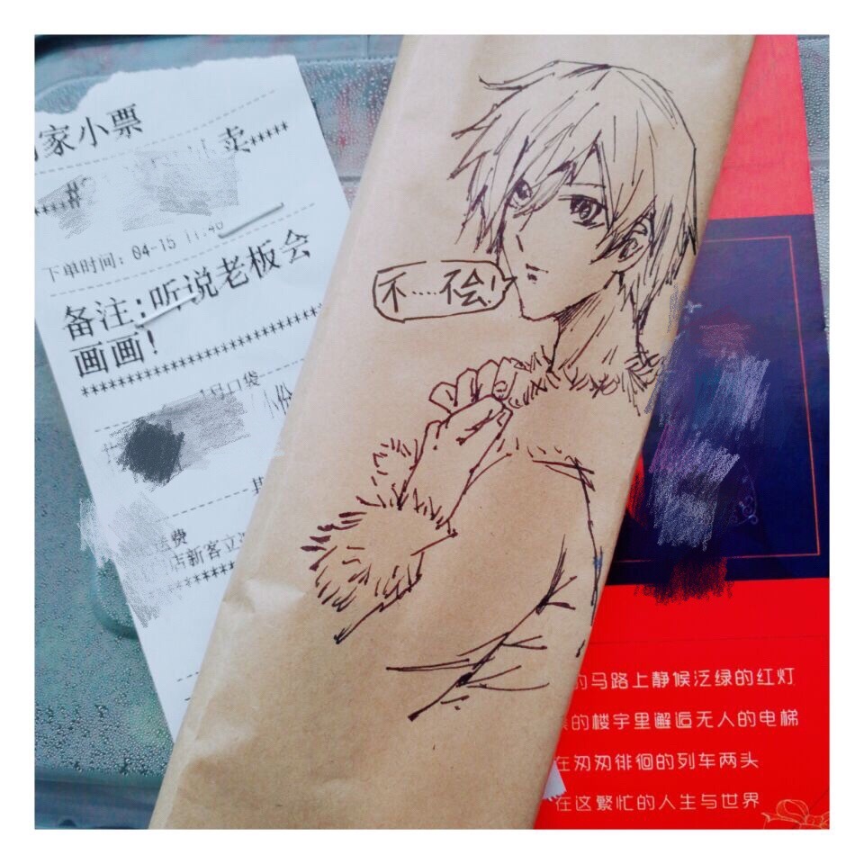 微博网友@NEKO-__-日常点了个外卖,竟然在外卖袋子上发现了老板手迹,还画得real好,便忍不住又点了一个: