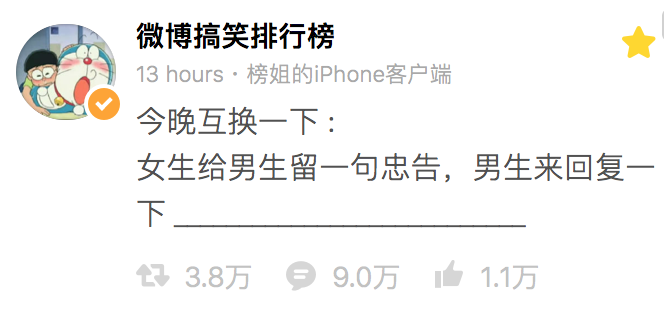 博主@微博搞笑排行榜 昨晚成功用一条微博掀起了腥风血雨,点开原po的评论区,当代年轻人男女关系或成死局。