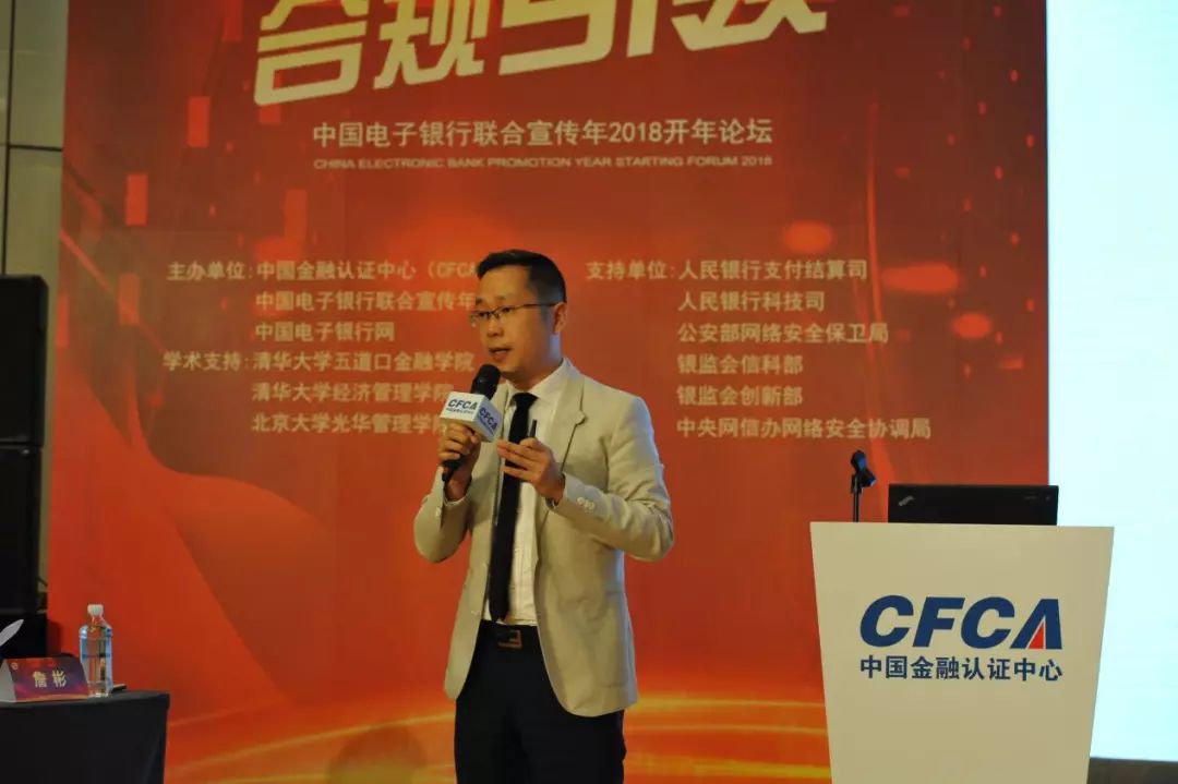4月11日,由中国金融认证中心(CFCA)联合近百家银行主办的“中国电子银行联合宣传年2018开年论坛”在京召开。本届论坛以“合规引领 聚力创新”为主题,百余位银行相关领导出席,围绕监管合规、直销银行、金融科技、内部外部竞合等议题展开热烈讨论,共同“把脉”银行业创新发展之策。