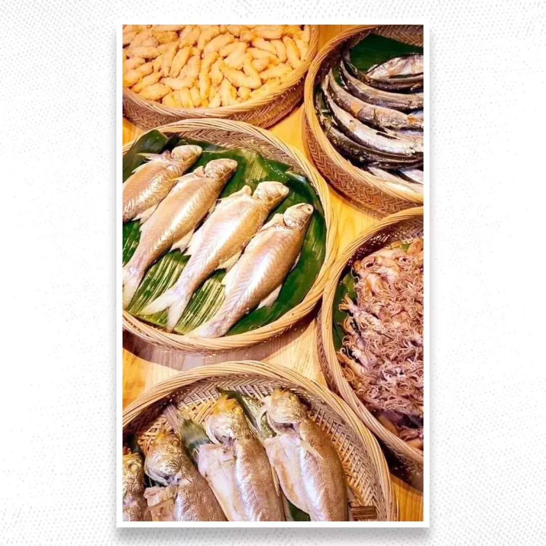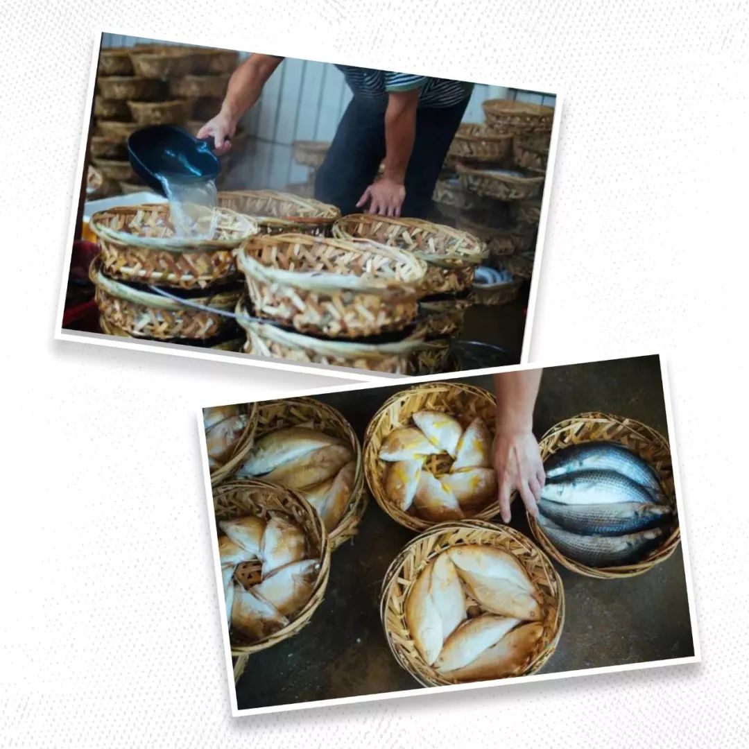最常见的是把鱼叠成菊花状或者并排摆放,容器则多为竹篓子。至于鱼饭的种类就不一而足了,马面鲀、马鲛、那哥鱼、鲷鱼等等多达几十种,皆由盐水煮成,煮到鱼眼睛爆出即收火。鱼饭本是船家为了及时保存海上捉获的鱼,因地制宜想出来的烹饪方法,所以品尝的地点当然越接近“产地”越好。