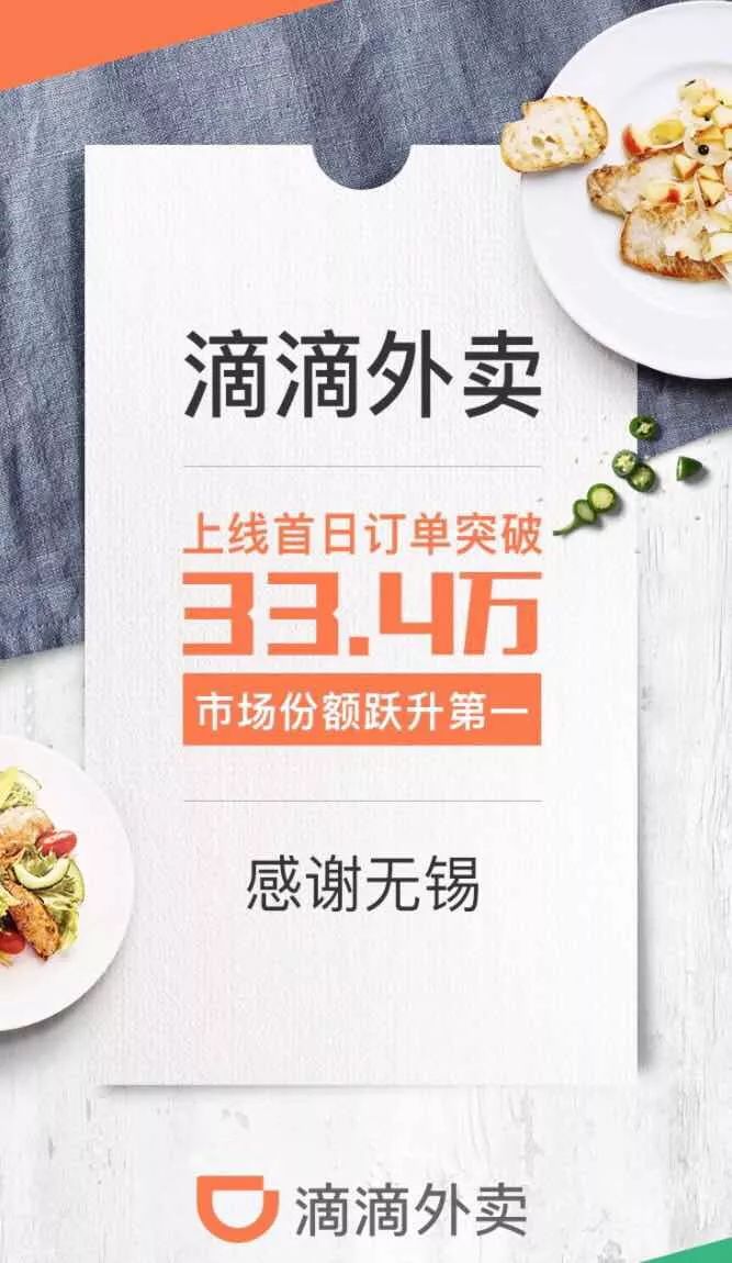 4月12日,滴滴外卖官方微博宣布,“不必来无锡,我们去找你,滴滴外卖全国开城在即”,并配上9张具有地方特色美食的海报。