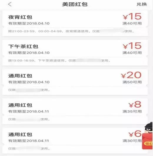 美团方面不甘示弱,夜宵包、下午茶包、通用红包轮番上阵。