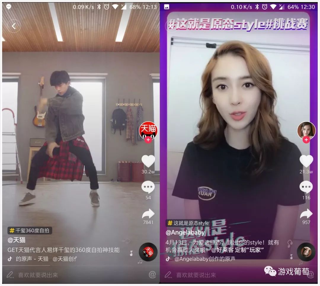 近段时间,一些知名厂商开始在抖音上展开宣传,其手段就是通过与知名艺人合作营销。如天猫就将其代言人易烊千玺的两段舞蹈视频发在了抖音上,共计收获了50余万赞与过万转发。而好莱客与Angelababy的合作营销也在抖音上获得了21.3万的点赞。