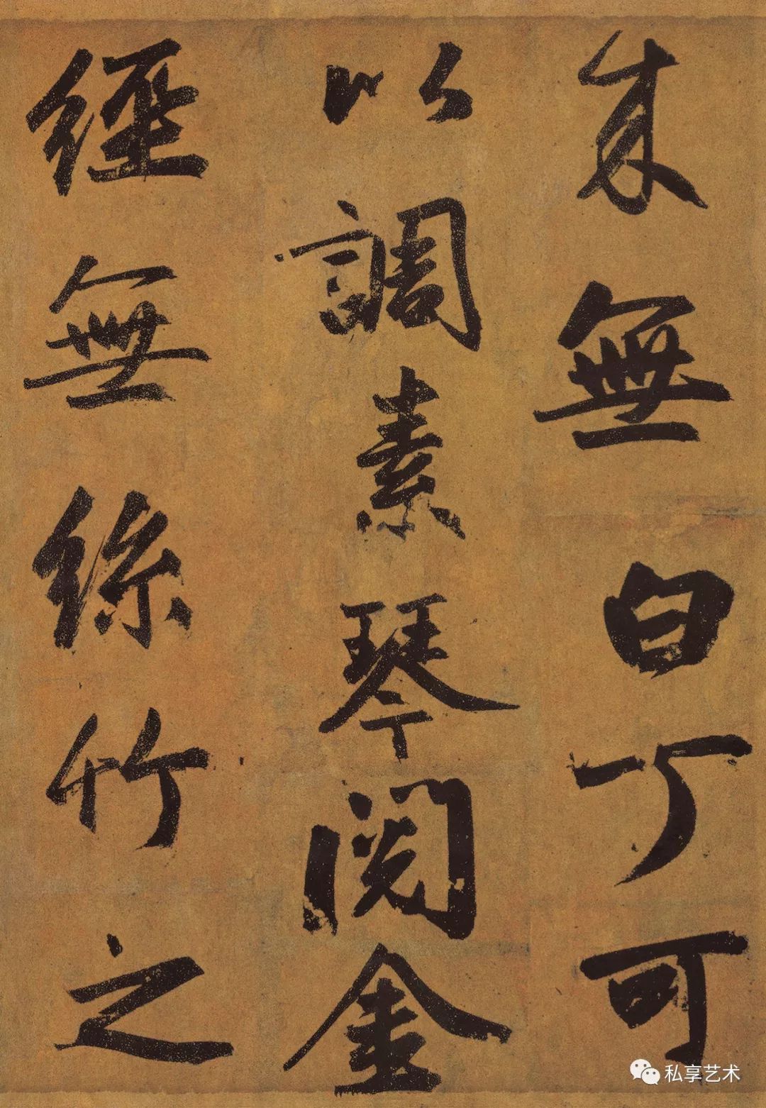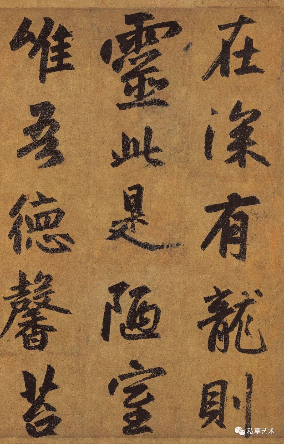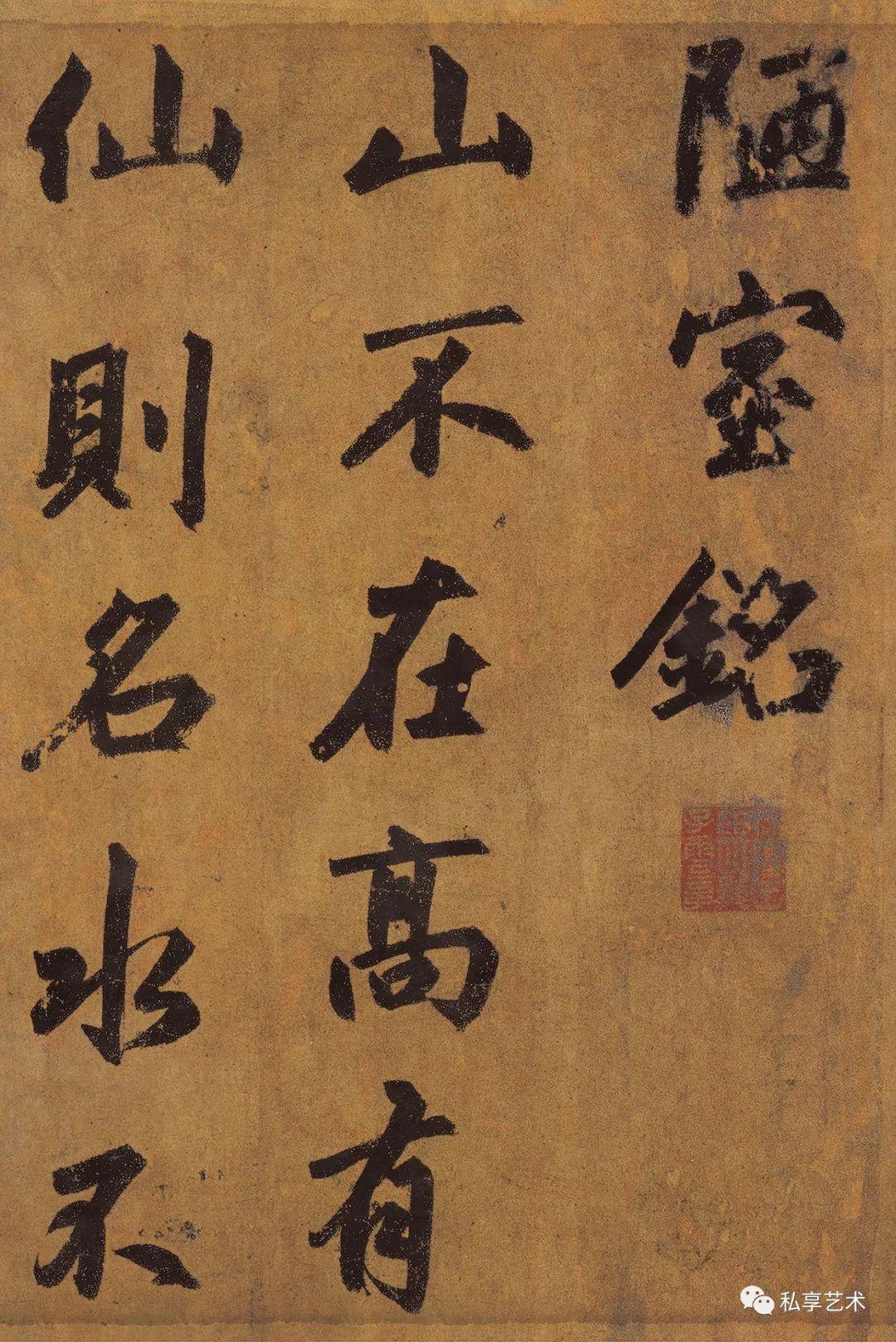 该卷录书唐刘禹锡《陋室铭》全文。通篇字形扁方,结体方阔,间架疏朗,方整平正,用笔方圆并举,以方笔居多,转折处见棱见角。法度谨严,字势宽博开张,气度平和雍容,雄浑大气。笔力厚重,笔画丰肥,笔法坚实,稳重遒劲,意态古朴生拙。书写时楷中兼有行意,在严整中增加了几分灵动。