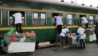 随着中国高铁、动车的发展,越来越多的列车上寻觅不到餐车的踪影了,取而代之的,是在专门配餐工厂里做好的冷链饭菜,只要在微波炉加热即可食用。而越来越多列车上的厨师,也慢慢退出历史舞台,他们大多去了铁路局的配餐基地。