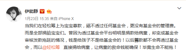 尤其捐赠资金管理、用途、去向也是一个值得关注的问题。伊能静曾在透过基金会捐款给病童时,却出现了款项延迟发放的问题。伊能静对此表示,以后不会通过基金会来捐赠,直接使用轻松筹等能够直接提现的平台。