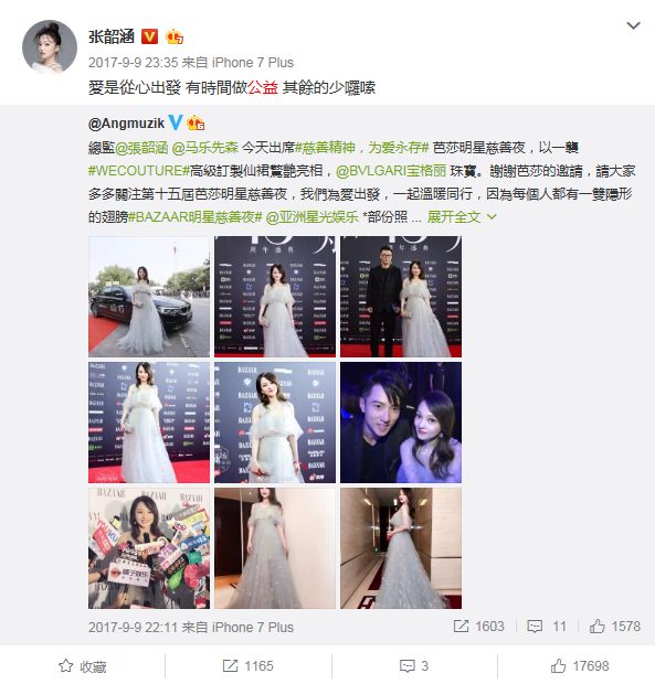 同时,当前的某些社会舆论也会影响明星做公益的初心。去年慈善芭莎晚会上,张韶涵捐款70万,但让她上热搜的并不是因为大方捐款,而是因为拍合照时的站位,变成了网友口中心机抢C位的“过气明星”。事后,张韶涵对此大气回应:“爱是从心出发,有时间做公益,其余的少啰嗦”