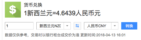 大家一般都叫新西兰元纽币,来看看现在的汇率吧!