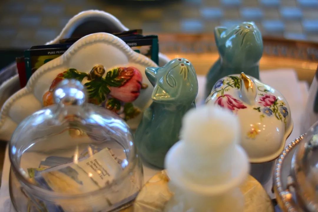 各类餐具都极端精致,从英国皇家官窑里面烧制的骨瓷碟,纯银的餐巾扣和餐具,花花这样的糙汉被这样的高规格待遇震慑得瑟瑟发抖。