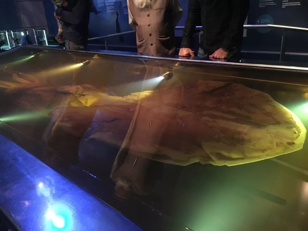 这个几米长的鱿鱼标本可以说是非常可怕了~附近还有屏幕播放关于这只标本的制作过程。