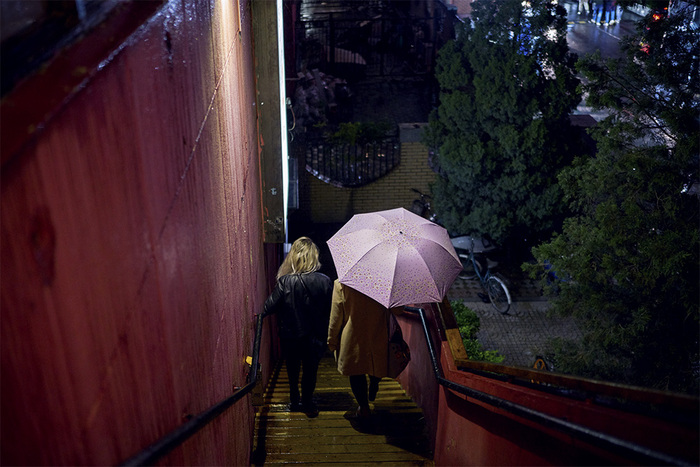 18. 夜已深,春雨未停,两名外国顾客乘着夜色撑着伞离开了书店......