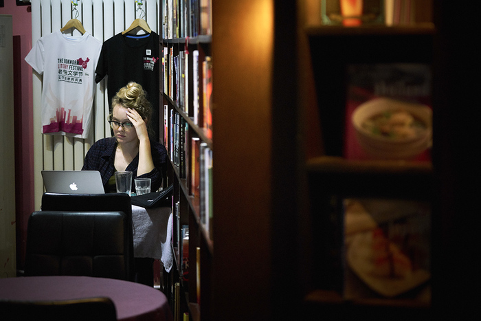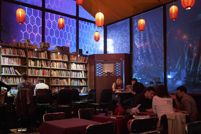 14. 因为书店靠近使馆区,所以也有很多外国友人会选择约上朋友来这里看书、聊天。