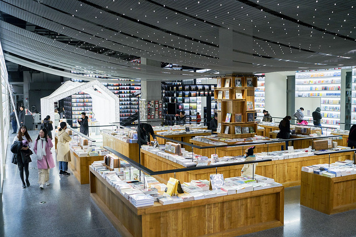 6. 书店一角的LED灯,灯光将书架上的图书映照的格外醒目,而且质感十足。