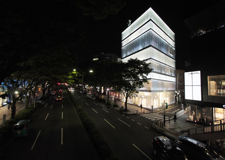 旗舰店坐落的表参道是日本著名商业街区,这里还有Herzog & de Meuron设计的普拉达旗舰店、伊东丰雄设计的Tod's大楼,和MVRDV设计的Gyre大楼。