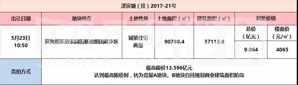 该地块编号为津滨塘(挂)2017-21号,位于滨海新区胡家园街新塘组团起步区,其四至为:东至中二路、南至和角道、西至中三路、北至和商道