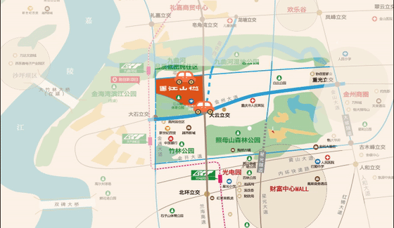 而观察江山樾的地理位置之后,不难发现,江山樾商业位于国家级新区——两江新区的战略地带,同时还处于北区热门区域——礼嘉、照母山之间的黄金中轴区,而区域发展引导城市人流量,江山樾商业今后可直接承接两个板块的大量人潮,无疑是第一时间畅享新区发展红利,从而实现商机不断。