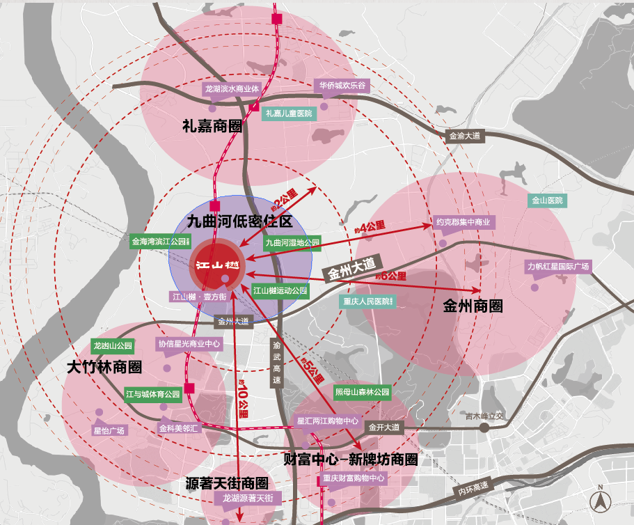 近年来,随着北区的不断发展,重庆商业版图也发生了极大的变化,一批新型的区域商业正拔地而起。而在身为北区重点发展板块的九曲河,江山樾商业备受瞩目,一跃成为区域内的高端消费目的地。究其原因,一方面,九曲河在“三限”政策之下,规划成为了重庆高端低密住区;另一方面,江山樾商业是九曲河板块内少有的拥有集中商业的约7万方商业街区,由此可直接承接九曲河庞大的高端消费需求。