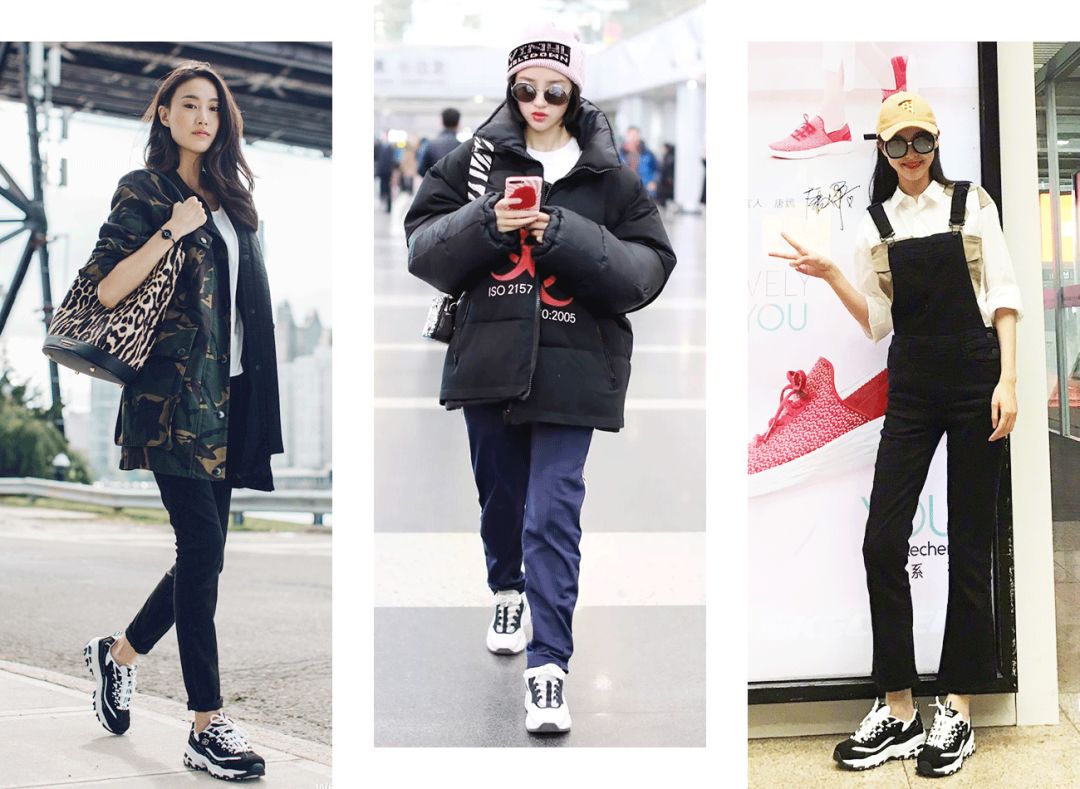 据说,“熊猫鞋”一开始火起来是因为Skechers的D'lites。圆滚滚,黑白相间,还真的挺像熊猫。据说超舒服,所以好多明星都爱穿,话题度很高。