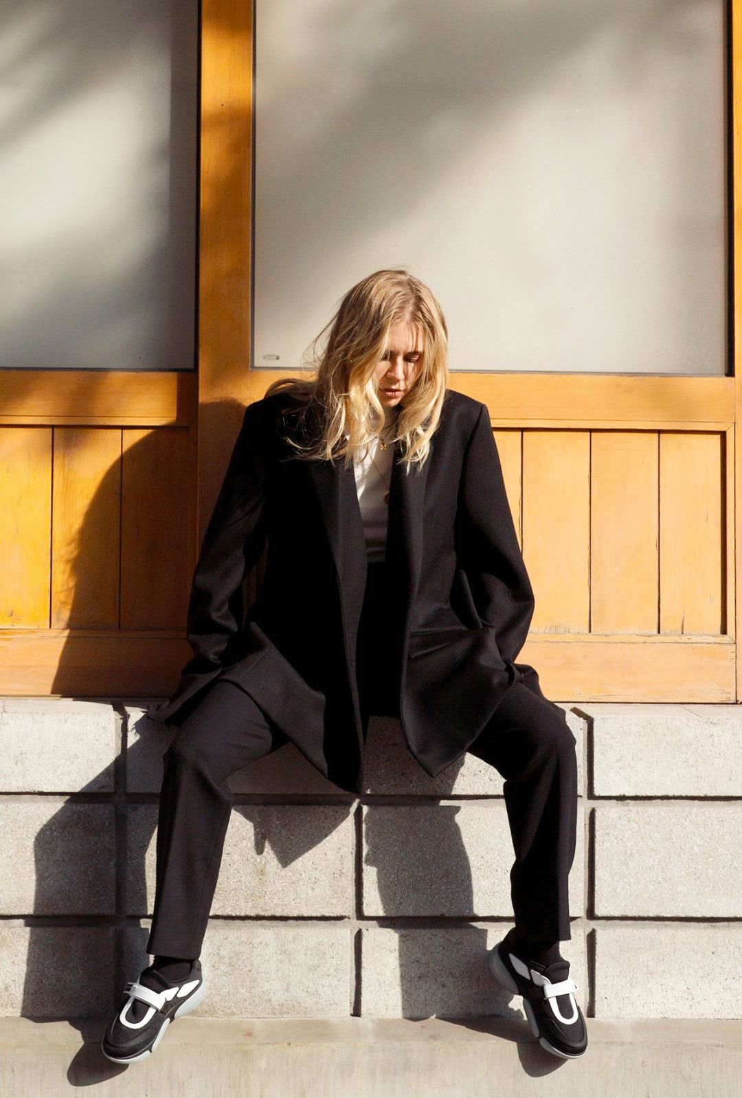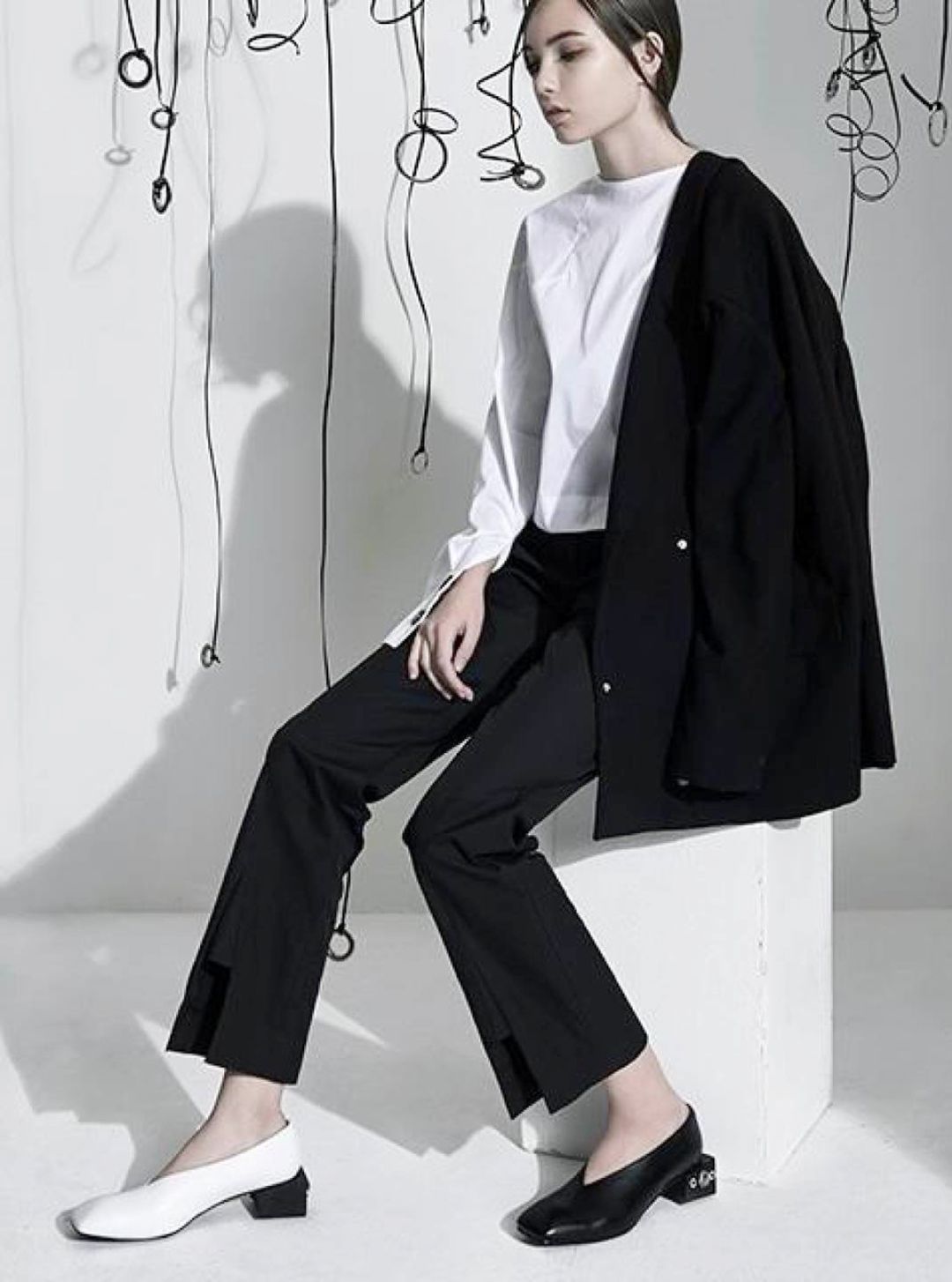 这个款式用白色鞋带将鞋面和鞋底连起来,让整体非常有建筑美感,再串个小方扣,帅气有层次,露出脚踝的设计又让整个人显得不过分硬朗,平衡的非常到位。
