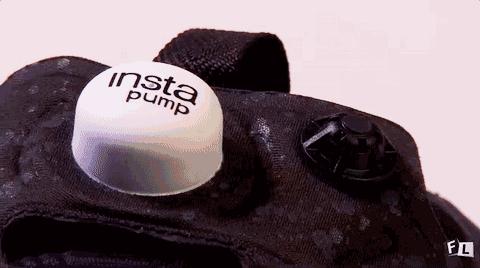 它有一个特别有趣的功能,就是自带充气系统,按鞋舌上那个圆圆的按钮能给鞋子充气,直到完全贴合你的脚掌为止。