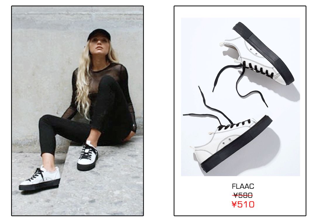 其实如果没有标志装饰,光靠缝鞋子的黑白明线也能让鞋子很有设计感。比如这双FLAAC的鞋子,巧妙利用了黑白色的对比度,把鞋子勾勒出了特别酷的工装风格,简简单单就赢过其他帆布鞋了。