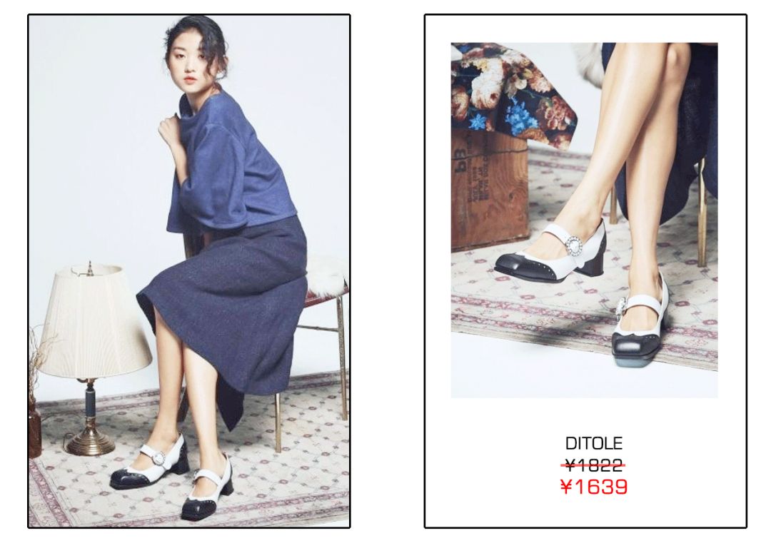这里我推荐一双这种鞋跟上做一些变化的款式,挺有趣,既保持了优雅的风格,也有了设计感。这种梯形粗跟鞋穿起来整个人气场强了不少,搭配短袜穿更加年轻,像有态度的少女。