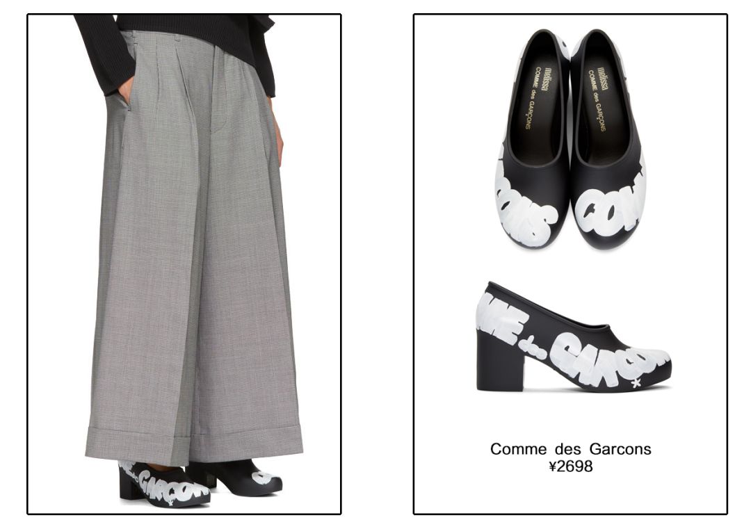 这双奶奶鞋也很厉害,整双鞋连带鞋跟完全是一体的,工业感的橡胶材质加上白色涂鸦装饰让奶奶鞋变得非常街头,还能当雨鞋穿,可以说是非常酷且实用了。