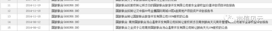 在这里作为第一大股东的当代系玩了个小手段:国旅联合旗下资产转让公告都是在2014年发布的,但是转让及变更全部“发生”在2015年,也就是说,转让价款自然都记入到2015年。