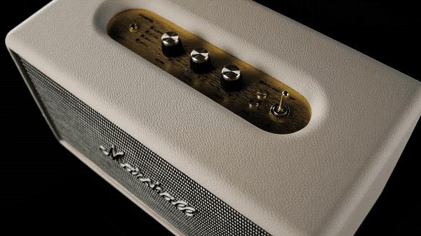 stanmore的造型复古又摇滚:金属旋钮+皮革机身+标志性的手写体logo。
