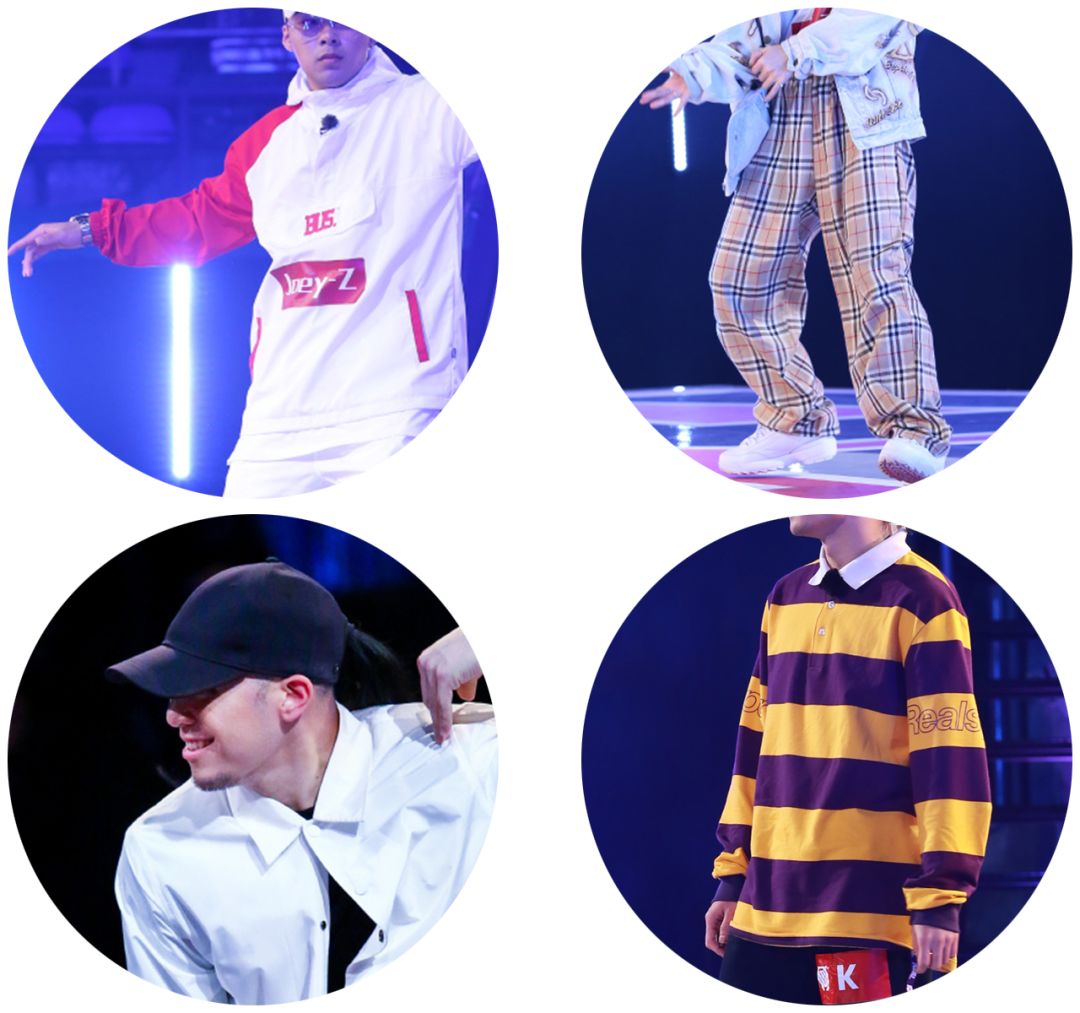 我注意到节目中的导师和选手都喜欢挑这种颜色鲜艳的款式。根据节目组造型师所说,因为Hip-Hop的舞蹈自由而张扬,所以选手都会挑这种颜色很亮的衣服,但皮肤白明显比皮肤黑穿着好看。