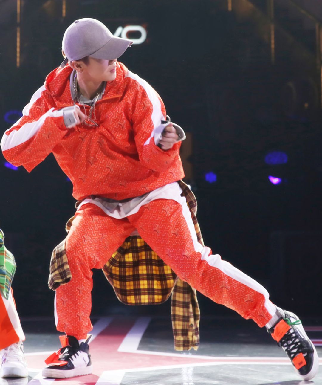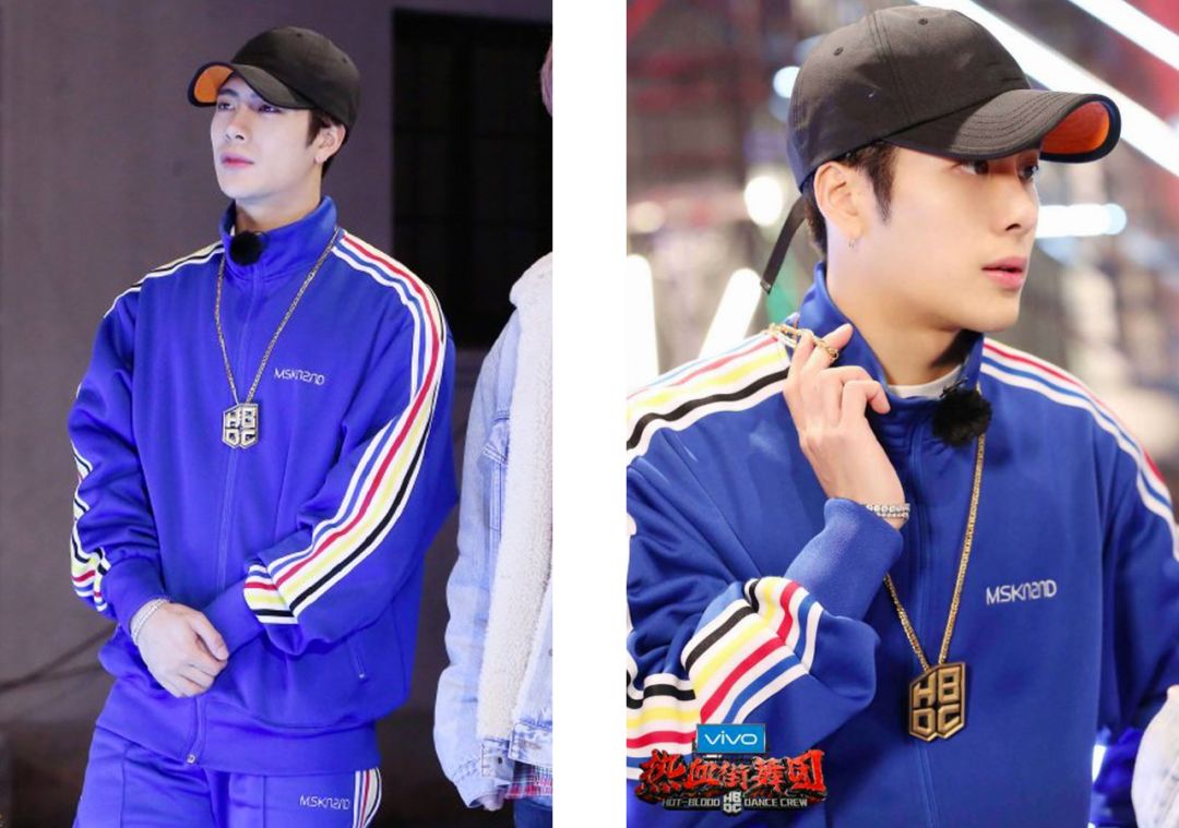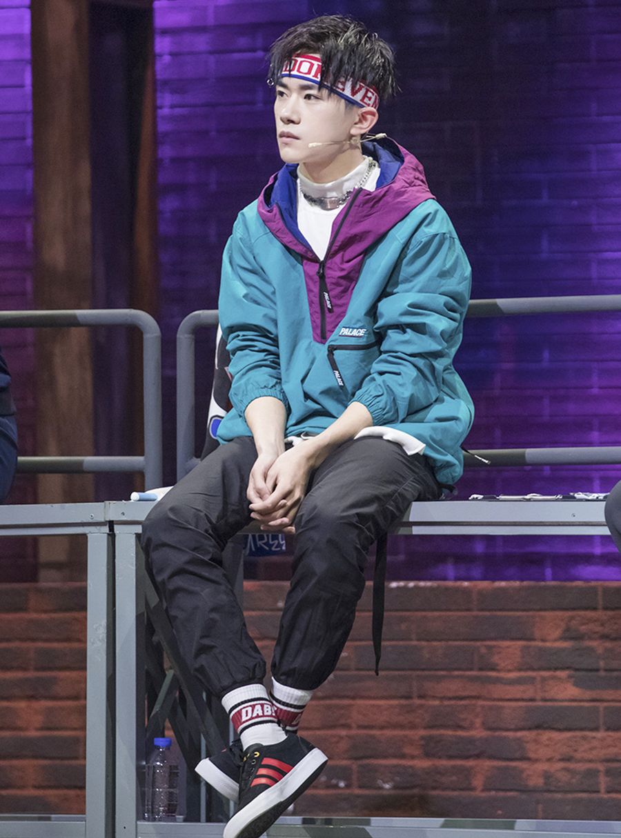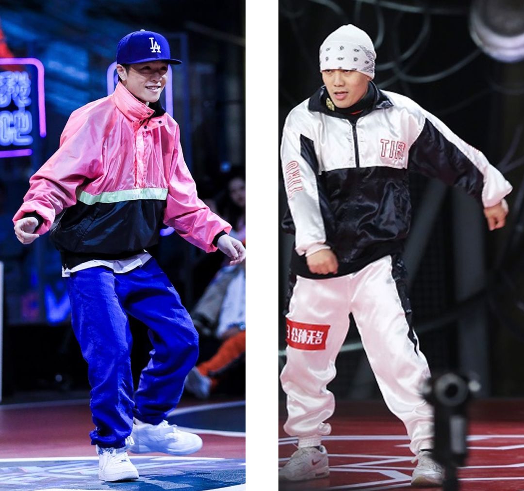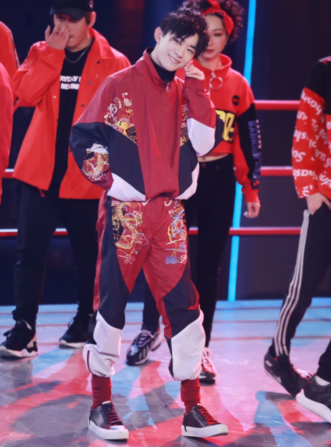 节目里选手都会穿这种田径运动服套装,很有复古风味,就像看90年代的青春校园片一样。王嘉尔在《热血街舞团》里,从头到尾穿的都是这种“校服”套装,他说自己其实是个套装控。