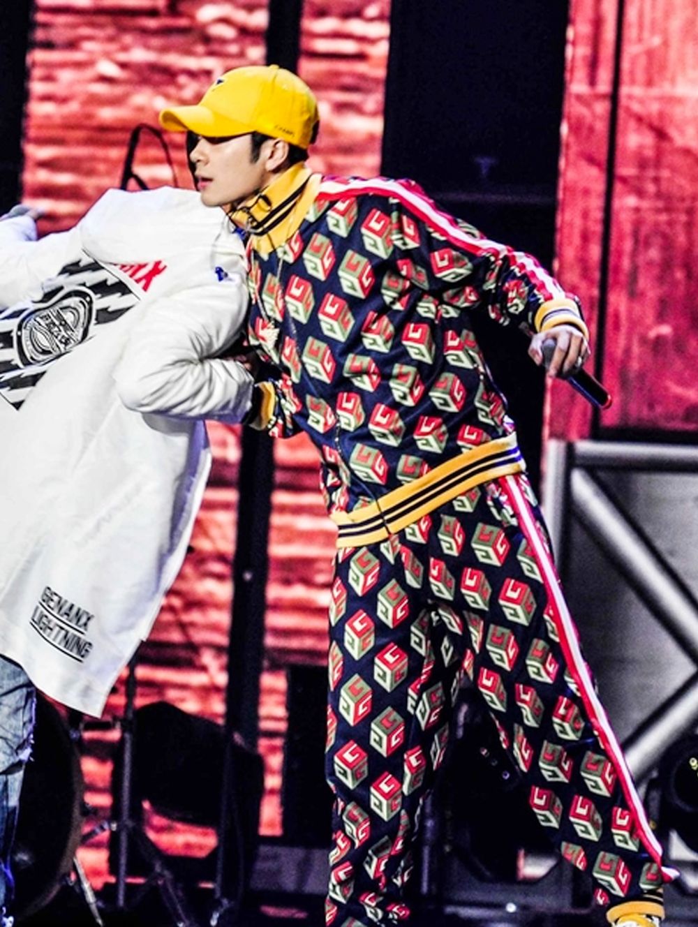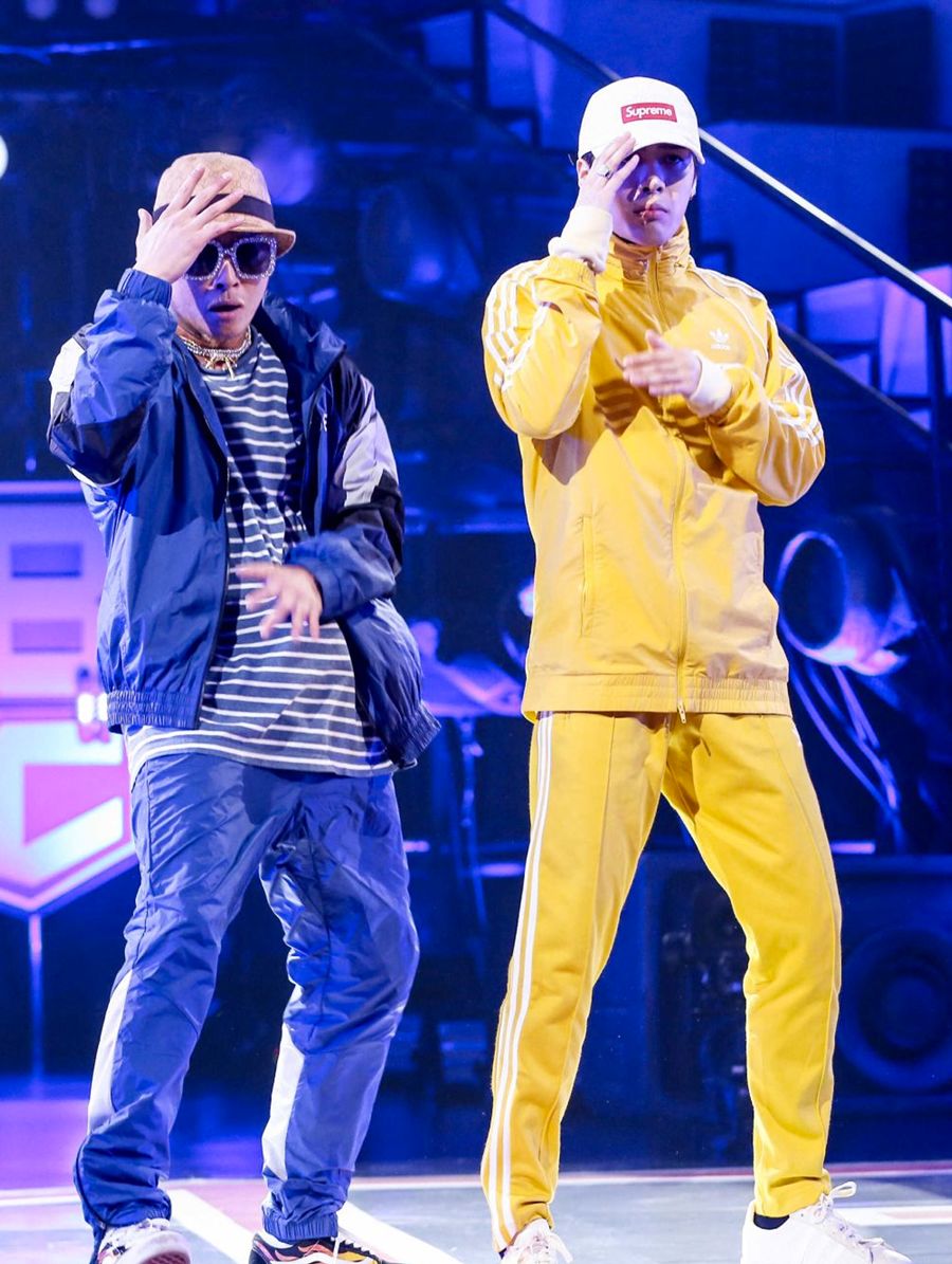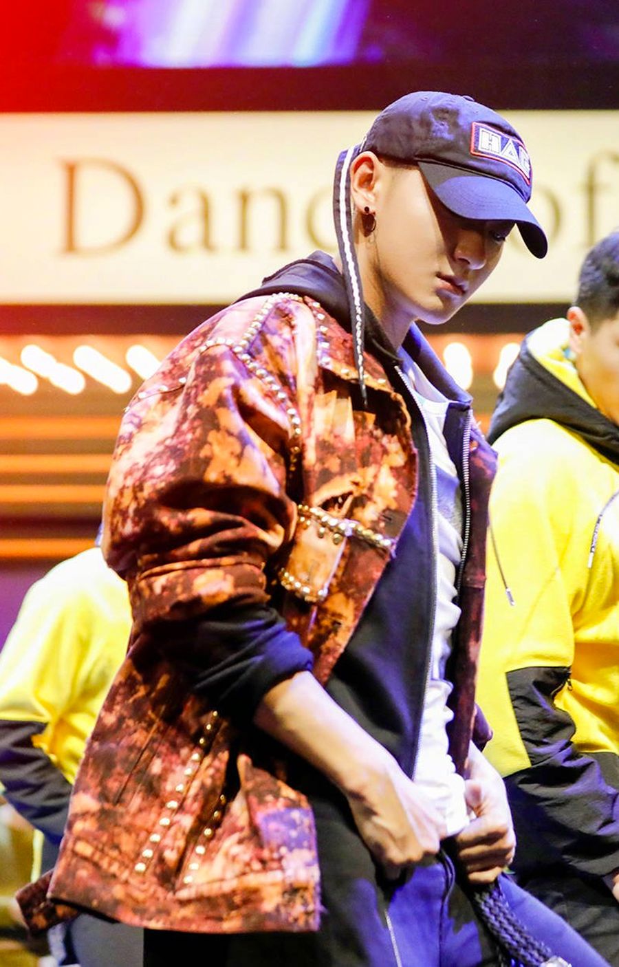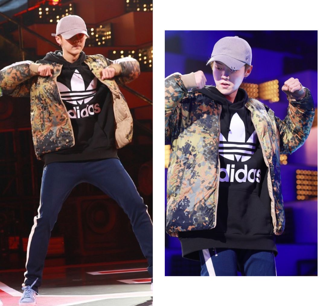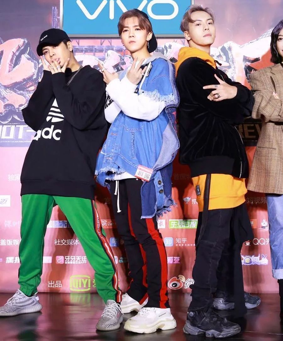 节目里选手都会穿这种田径运动服套装,很有复古风味,就像看90年代的青春校园片一样。王嘉尔在《热血街舞团》里,从头到尾穿的都是这种“校服”套装,他说自己其实是个套装控。
