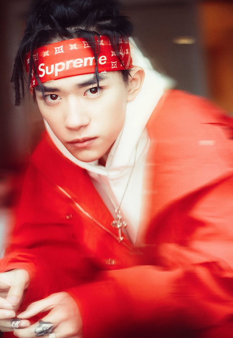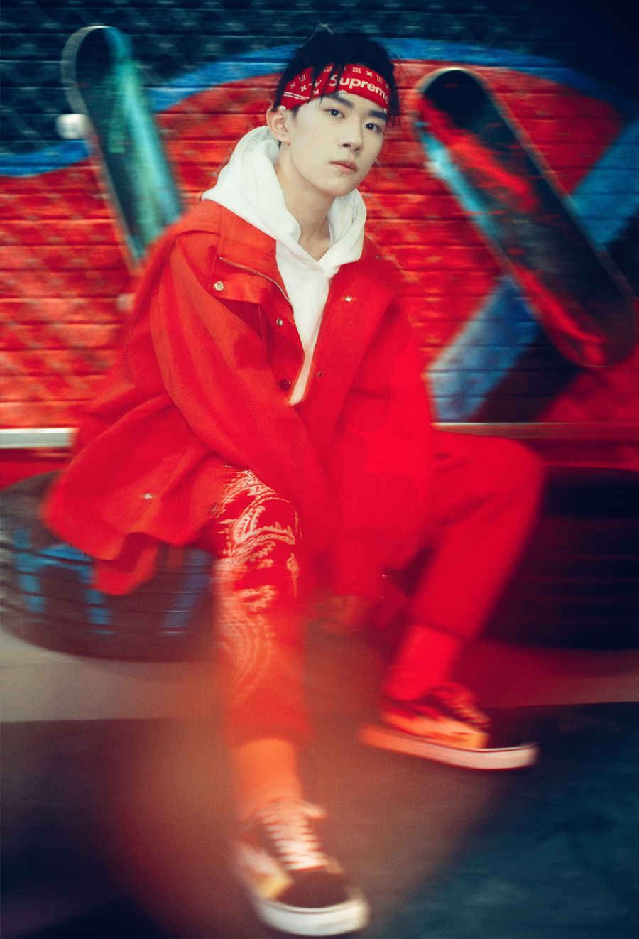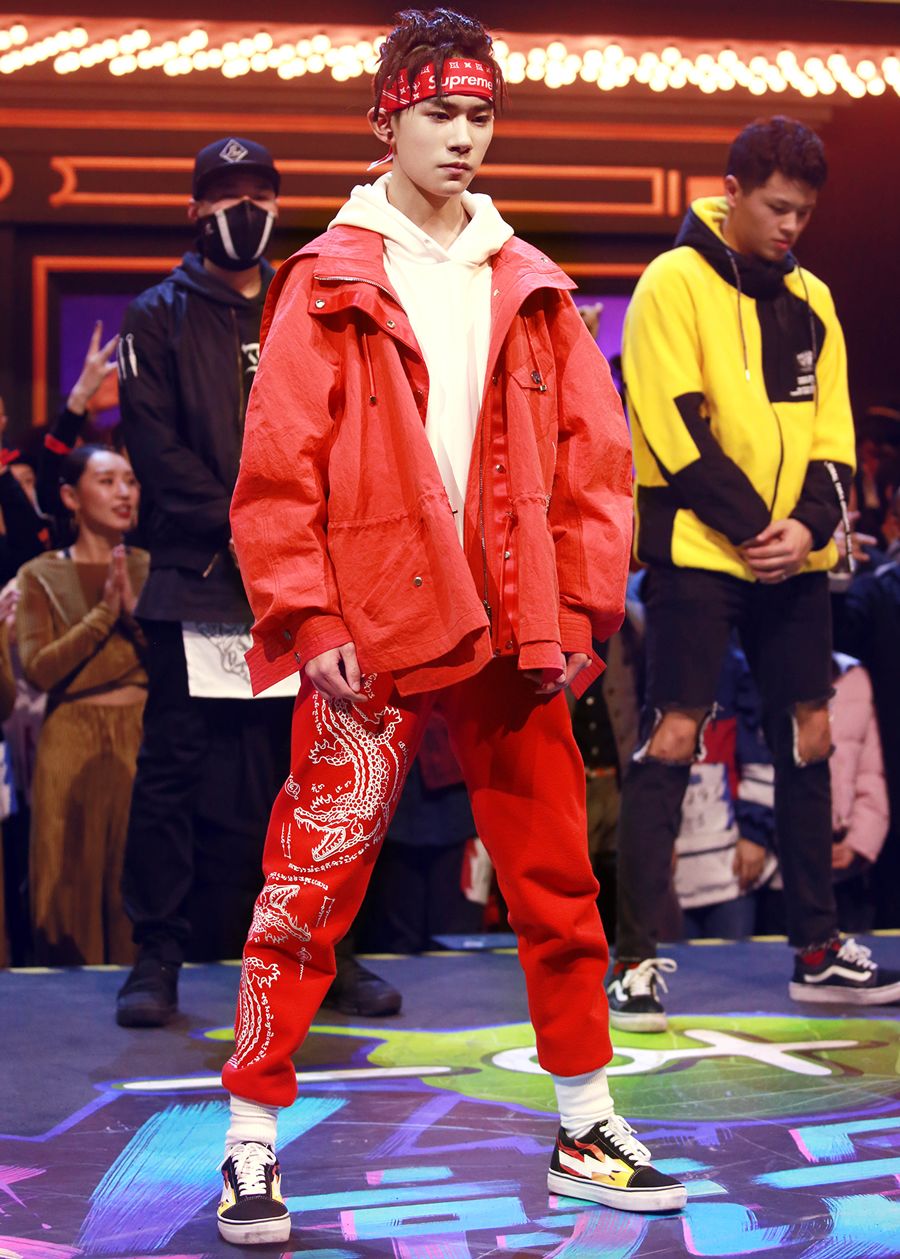 像易烊千玺的这套就很厉害,红色机能风外套搭配运动裤,上面印着龙的图案(他自己就是龙年出生的),
