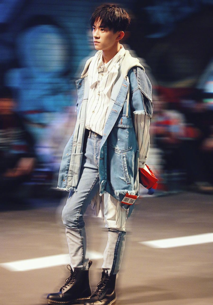 除了运动外套,在牛仔外套里面搭配连帽卫衣也很适合平时穿。易烊千玺和鹿晗选择了更加直接简单的方法,就是穿假两件。四字弟弟搭配同牌的竖条纹衬衫和牛仔裤,更帅气。