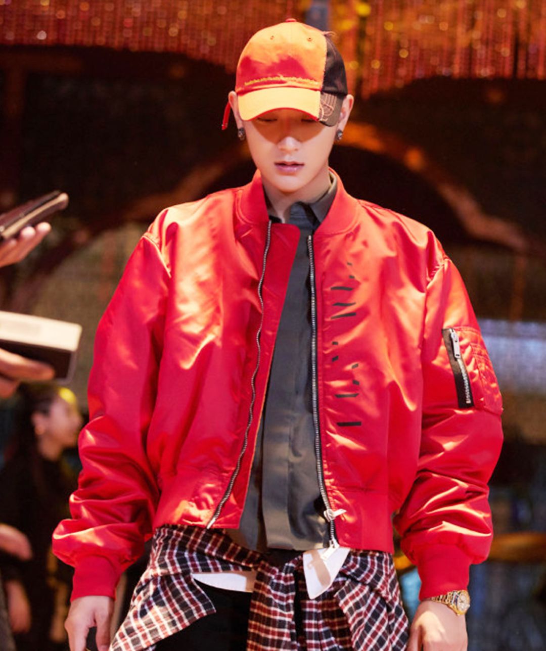 鹿晗在最新一期的《热血街舞团》中,他就把红色格子衬衫内搭在牛仔夹克里面,重点是露出最里面的字母T恤,整个造型就不呆板了。