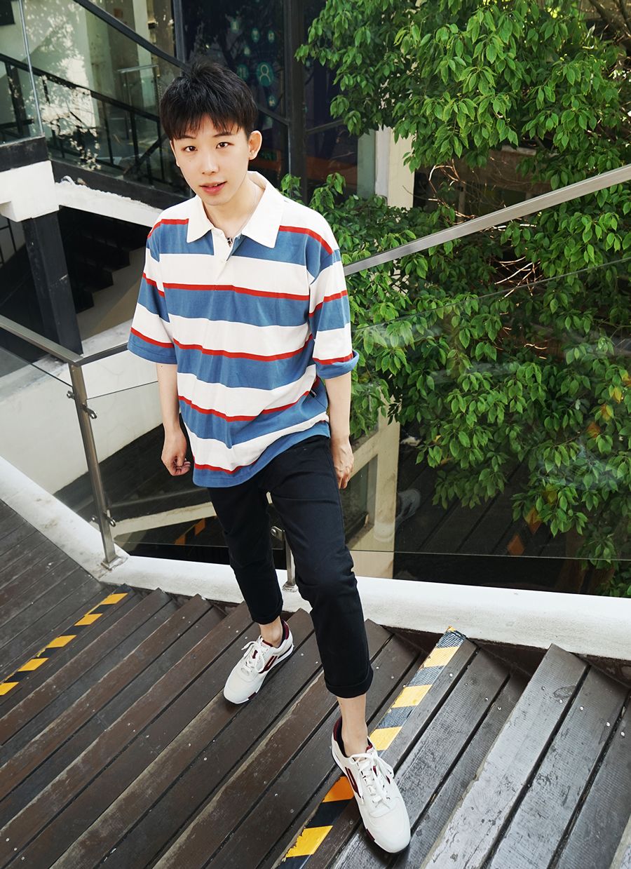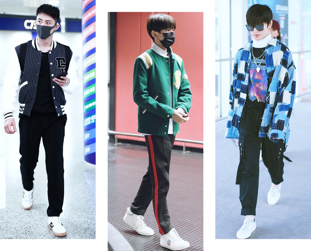 如果你觉得普通的田径装套装太单调,可以尝试易烊千玺穿的这种刺绣装饰的套装,不过刺绣图案要注意了,不够瘦气质不够好,容易变成郭德纲。