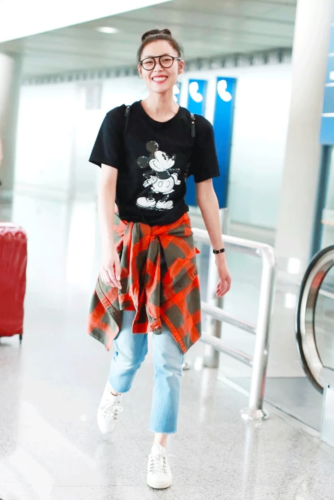 你看,腰上系件格子衬衫,造型就是丰富很多,并且有一种”哎呀,我只是随便系一下结果就这么时髦“的不经意感。